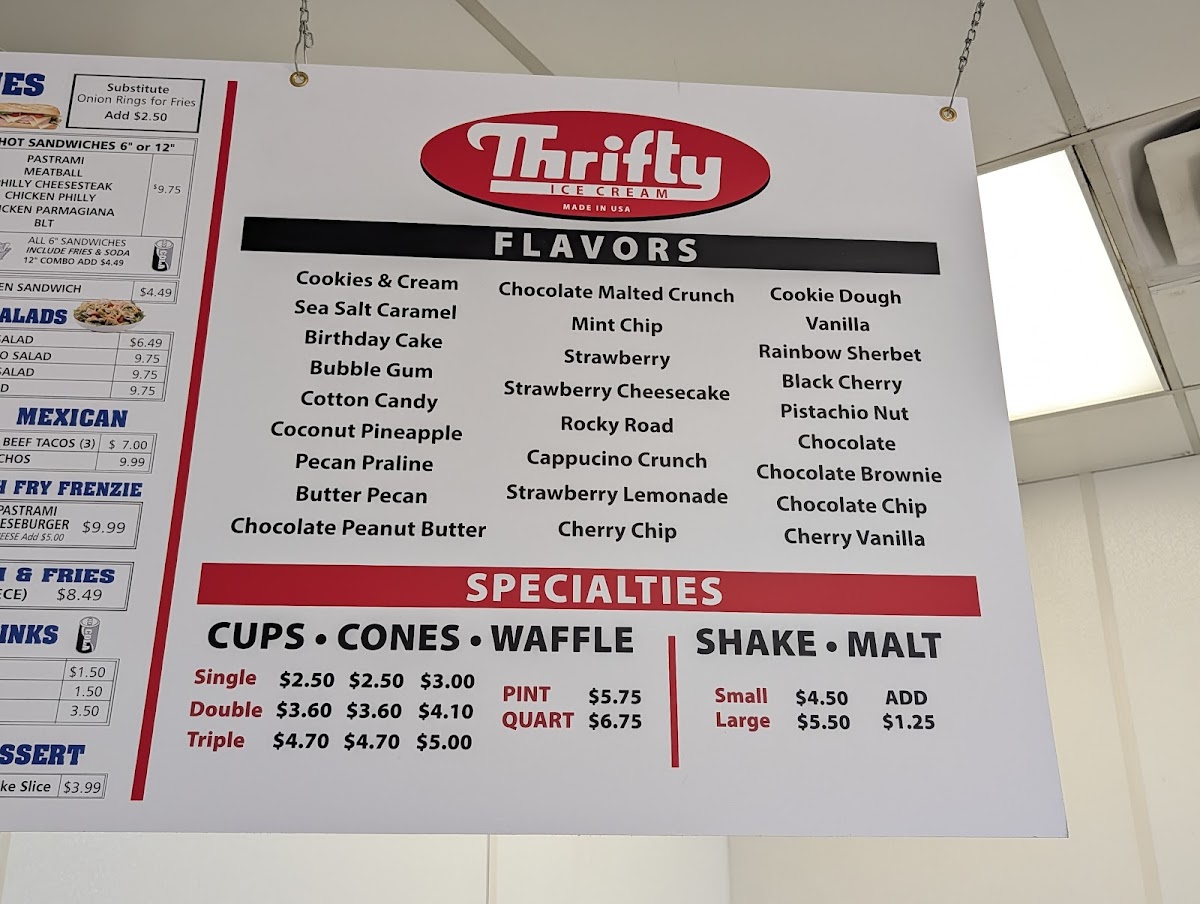 Families will love the Family Specials, including Special A and Special B, perfect for sharing and catering to larger appetites. If you're craving dessert, the Thrifty Ice Cream options range from a Single to a Triple scoop, with the option of adding a waffle cone for just 50 cents.